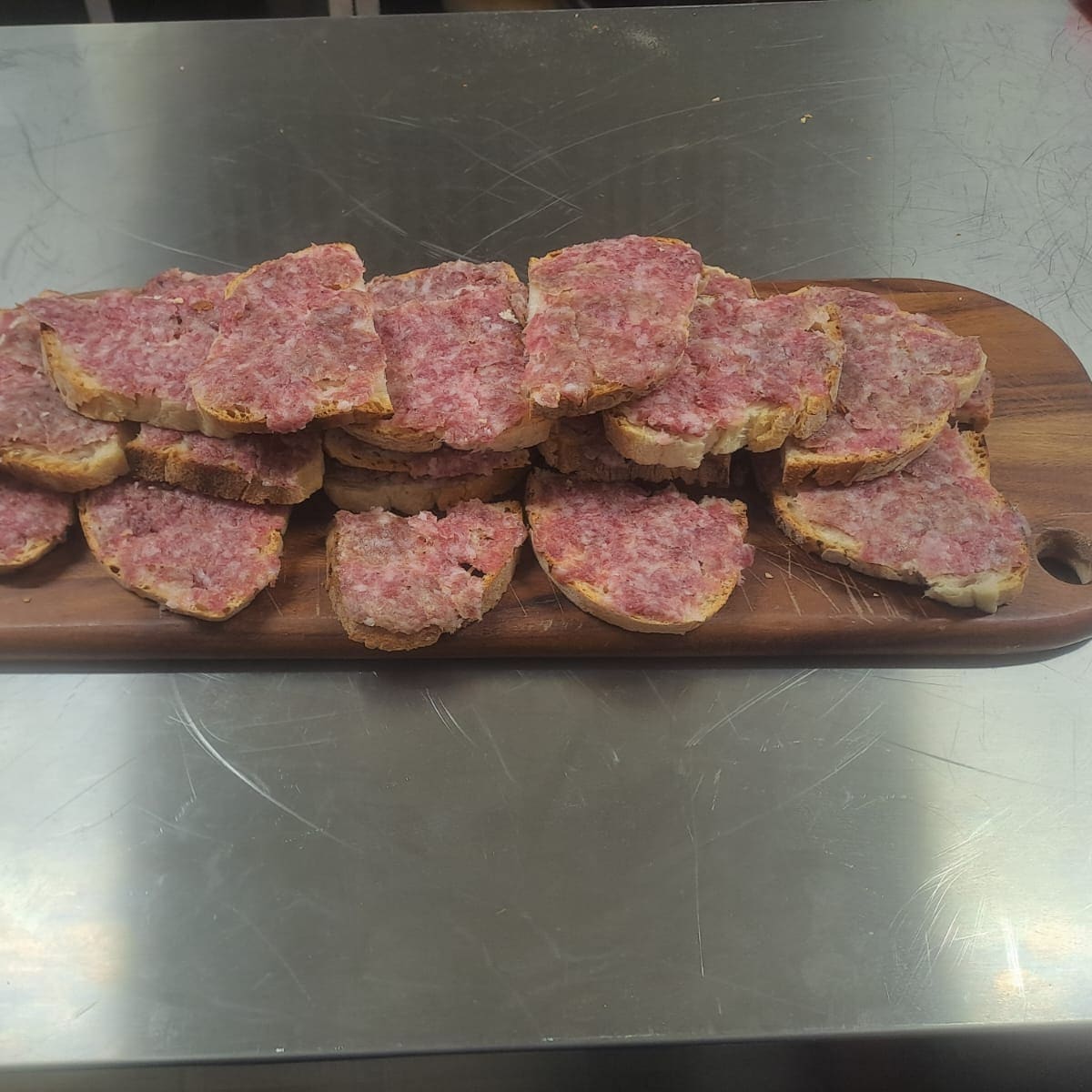 Salsiccia di carne e di fegato sott'olio spalmata sul pane